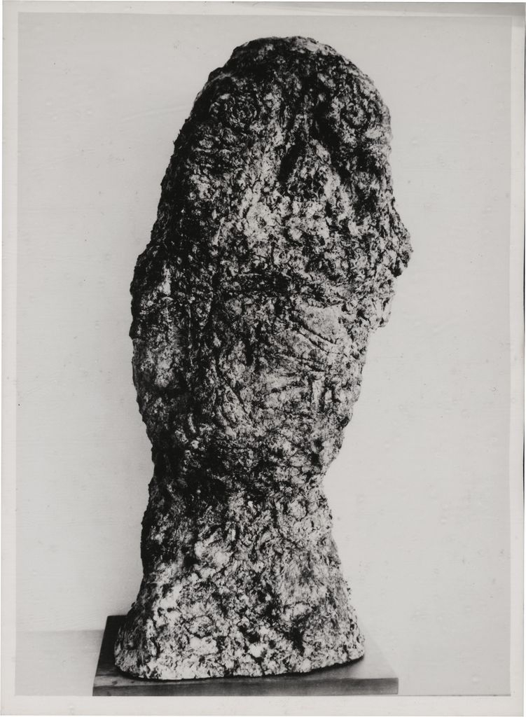 Φωτογραφία, α/μ, φωτογραφικό χαρτί, 18×13 εκ., έργου του Jean Dubuffet, το οποίο παρουσιάστηκε στα ‘Παναθήναια της Σύγχρονης Γλυτπικής’ στην Αθήνα τον Σεπτέμβριο 1965.