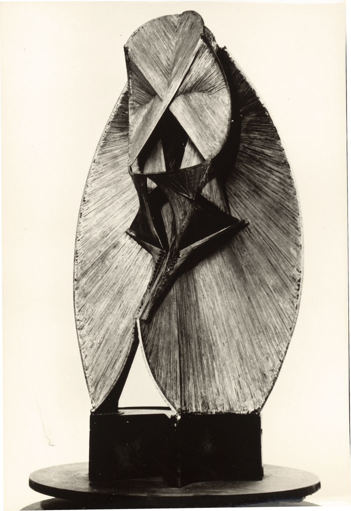 Φωτογραφία, α/μ, φωτογραφικό χαρτί, 18×13 εκ., έργου του Antoine Pevsner, το οποίο παρουσιάστηκε στα ‘Παναθήναια της Παγκόσμιας Γλυπτικής’ στην Αθήνα τον Σεπτέμβριο 1965.
