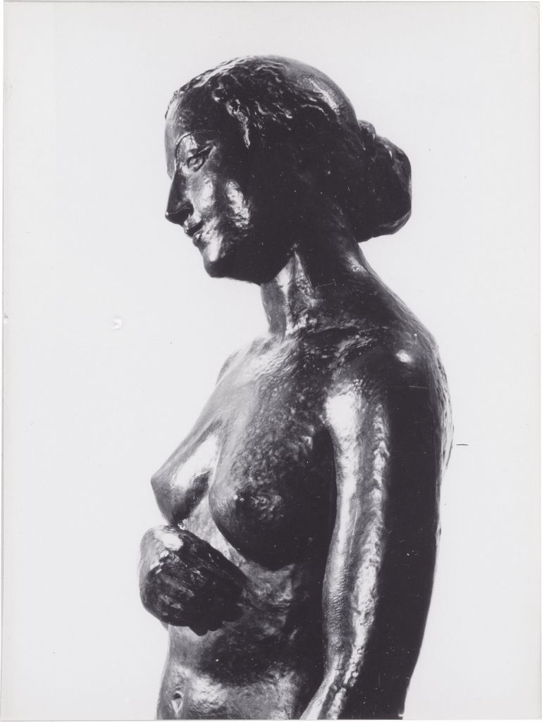 Φωτογραφία, α/μ, φωτογραφικό χαρτί, 18×13 εκ., έργου του Charles Despiau, το οποίο παρουσιάζεται στα ‘Παναθήναια της Παγκόσμιας Γλυπτικής’ της Αθήνας, τον Σεπτέμβριο 1965.
