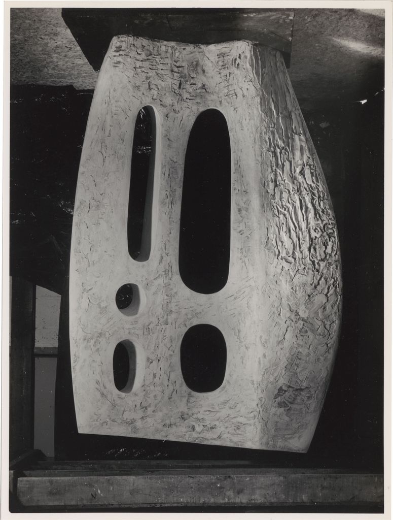 Φωτογραφία, α/μ, φωτογραφικό χαρτί, 21×16 εκ., έργου της Barbara Hepworth, το οποίο παρουσιάστηκε στα ‘Παναθήναια της Παγκόσμιας Γλυπτικής’ στην Αθήνα τον Σεπτέμβριο 1965.
