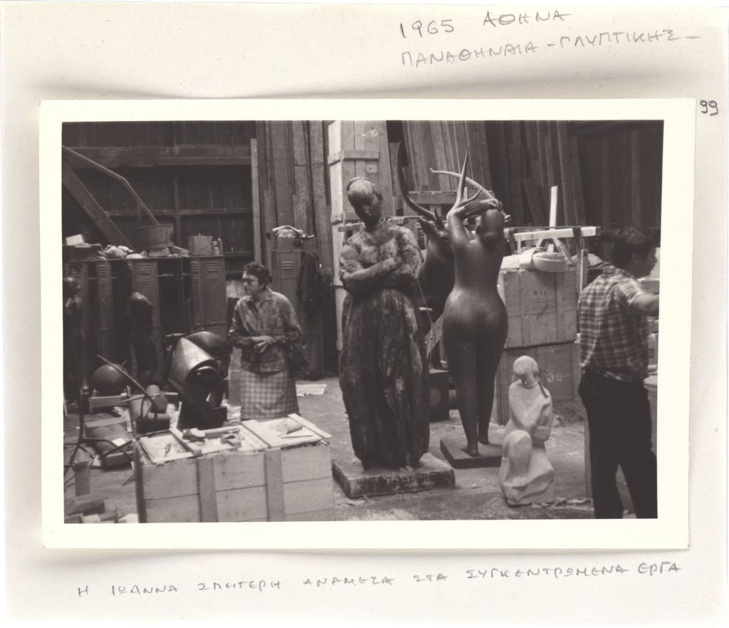 Φωτογραφία, α/μ, φωτογραφικό χαρτί, 13×18 εκ., έργων τα οποία παρουσιάστηκαν στα ‘Παναθήναια της Σύγχρονης Γλυπτικής’ στην Αθήνα τον Σεπτέμβριο 1965. Ανάμεσα σε αυτά η Ιωάννα Σπητέρη.