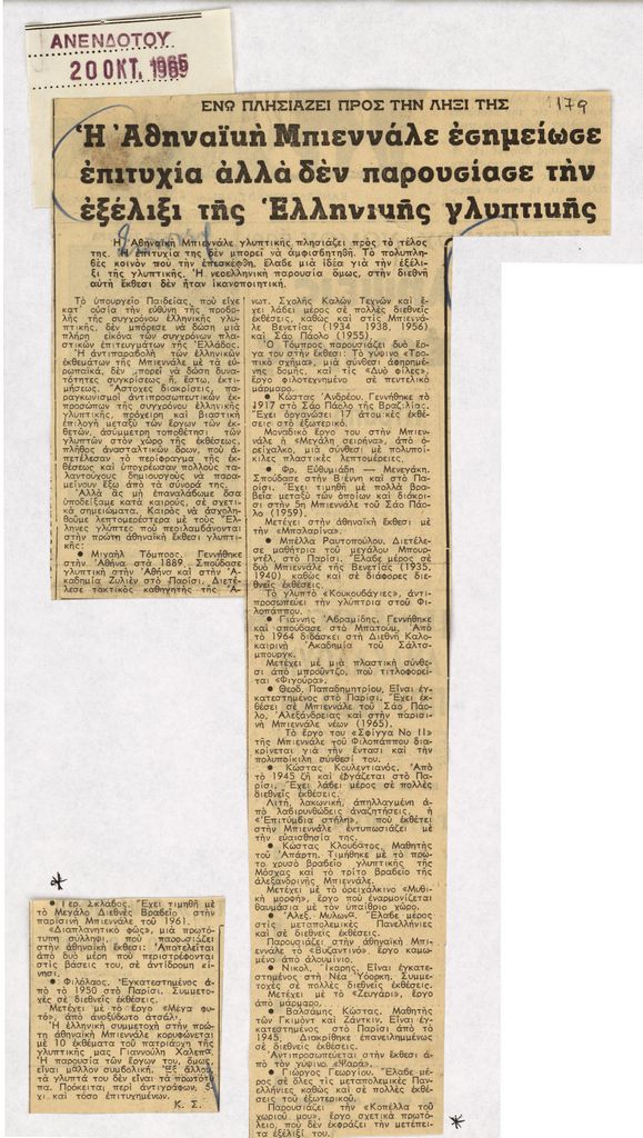 Απόκομμα ΑΝΕΝΔΟΤΟΥ- Χρονολογία 20 ΟΚΤ. 1965
