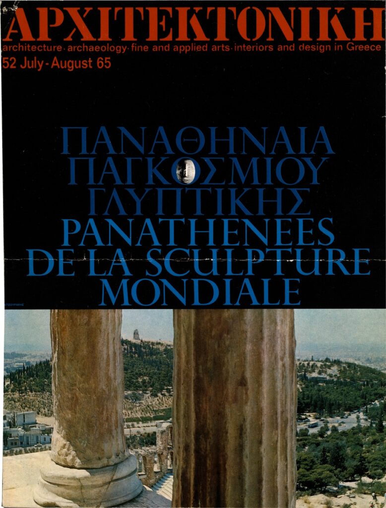 Απόκομμα του περιοδικού “Αρχιτεκτονική” (τεύχος 07-08/1965) όπου δημοσιεύεται άρθρο με θέματα ‘Παναθήναια της Παγκόσμιας Γλυπτικής’ της Αθήνας. Περιέχει συνέντευξη του Γεώργιου Κανδύλη, υπεύθυνου αρχιτέκτονα για τη διοργάνωση και κείμενο του Τώνη Σπητέρη.