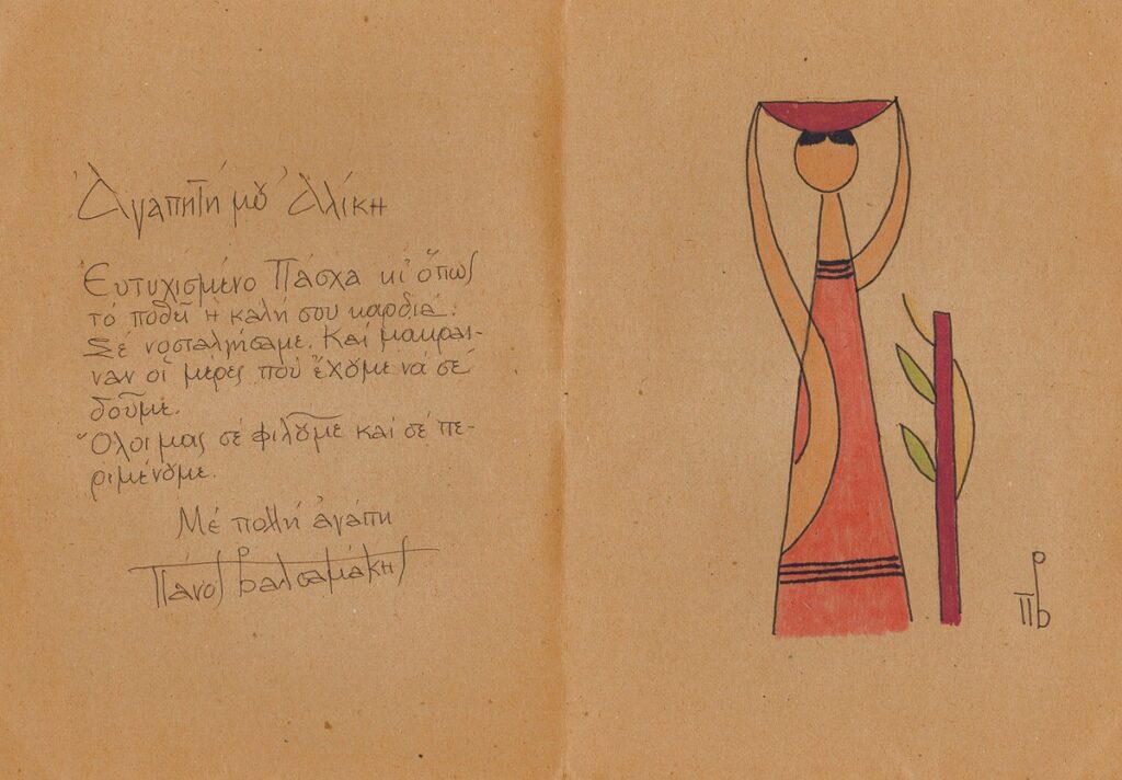 Ευχετήρια κάρτα του Π. Βαλσαμάκη προς την στην Αλίκη Τέλλογλου