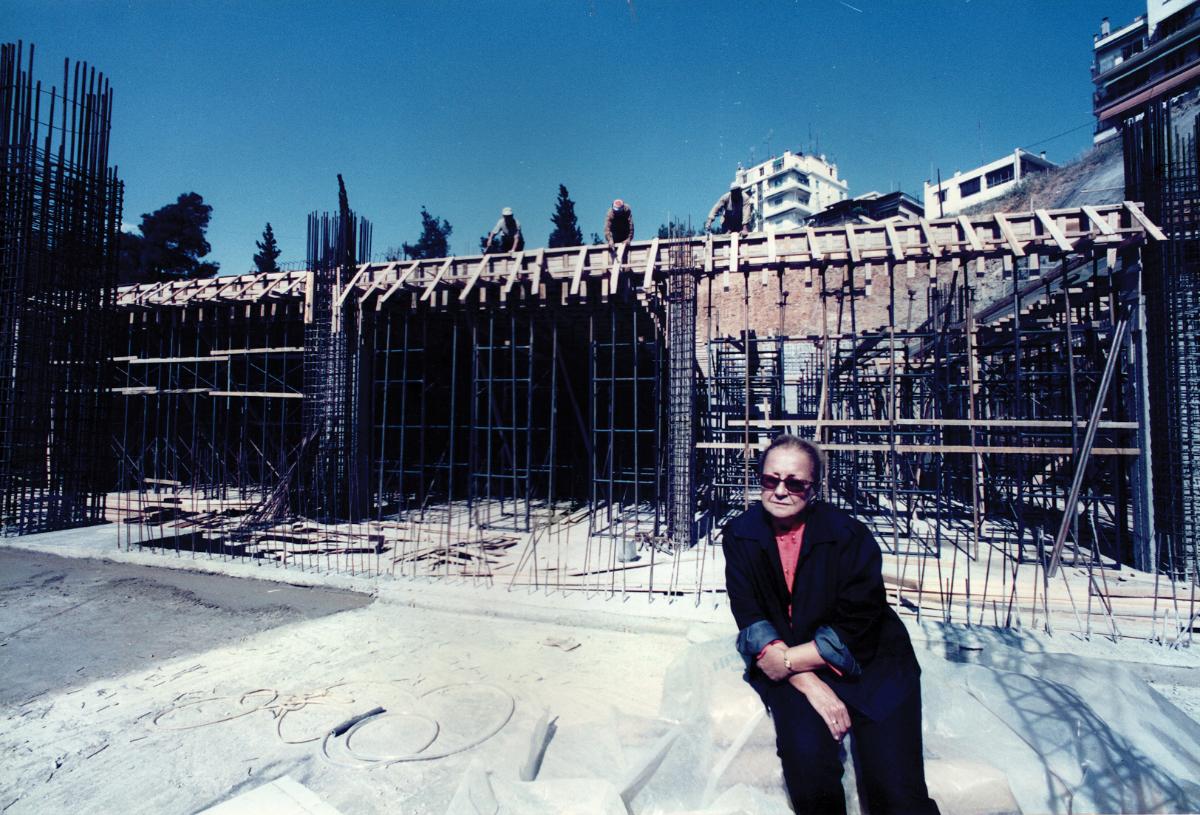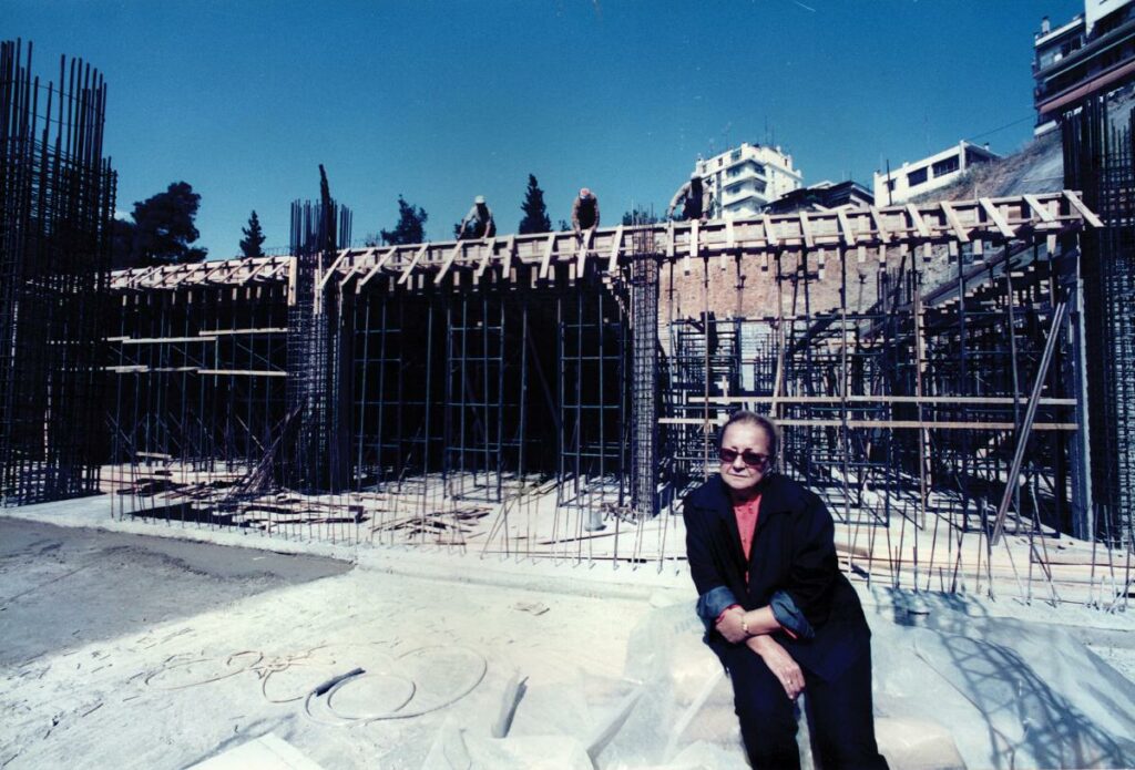 Η Αλίκη Τέλλογλου στο εργοτάξιο του Τελλογλείου Ιδρύματος Τεχνών
