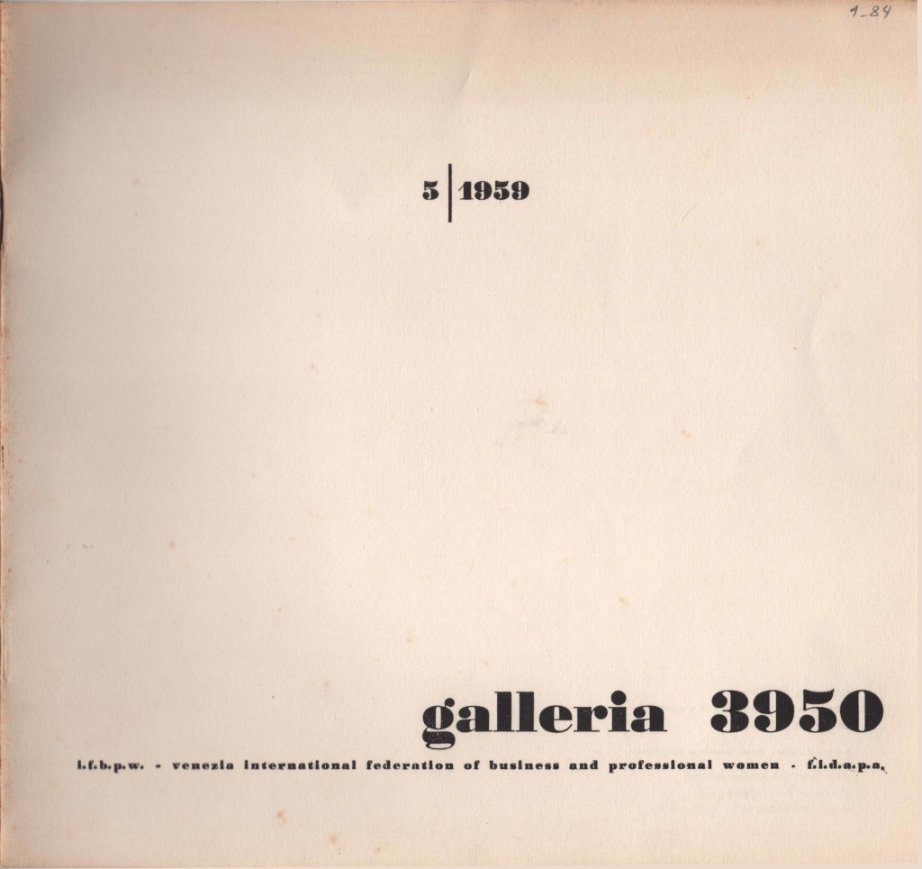 Έντυπο, στα ιταλικά, 12σέλιδο, χαρτόνι και χαρτί ιλουστρασιόν, 19,5×21 εκ. Κατάλογος της ομαδικής έκθεσης τεσσάρων Ελληνίδων εικαστικών στη Βενετία το 1959. Περιέχει κείμενα του Σωτήρη Μεσσήνη, βιογραφικό καλλιτεχνών και κατάλογο των έργων της έκθεσης.