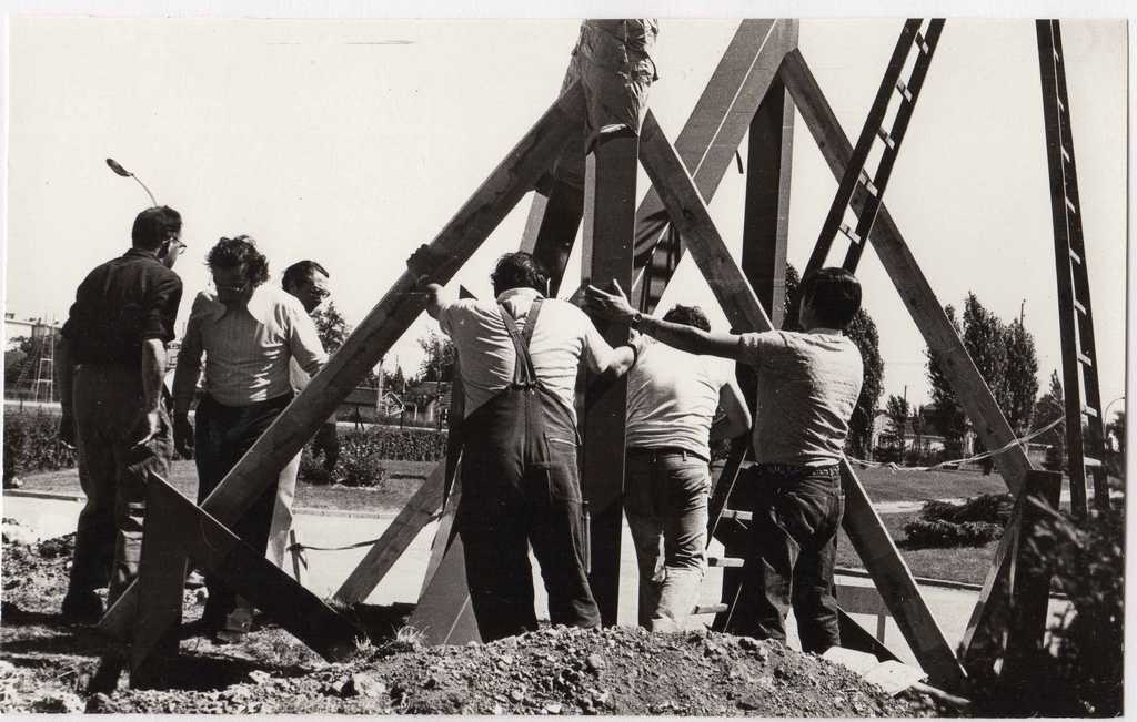 Στήσιμο του έργου της Ι. Βεροπούλου-Σπητέρη “Σύνολο από πέντε τριγωνικά στοιχεία” (“Ensemble des cinq éléments triangulaires”) στo Evreux