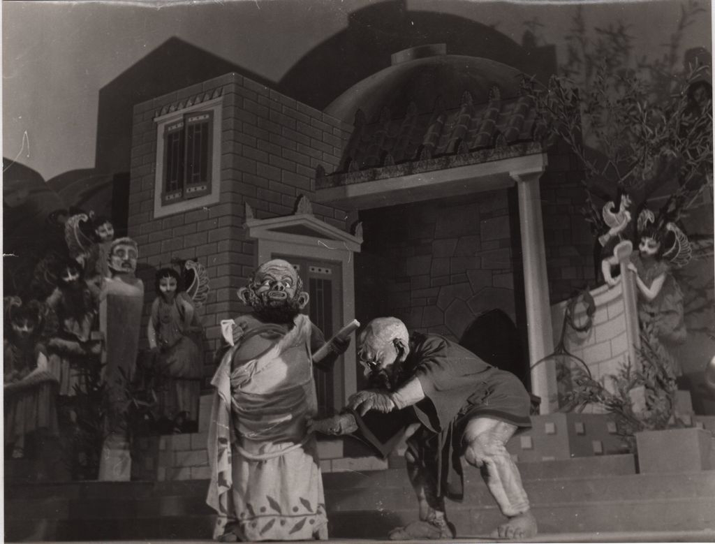 Φωτογραφία, α/μ, φωτογραφικό χαρτί, 7,5×11 εκ., επικολλημένη σε φύλλο χαρτιού Α4. Στιγμιότυπο από την παράσταση το 1951