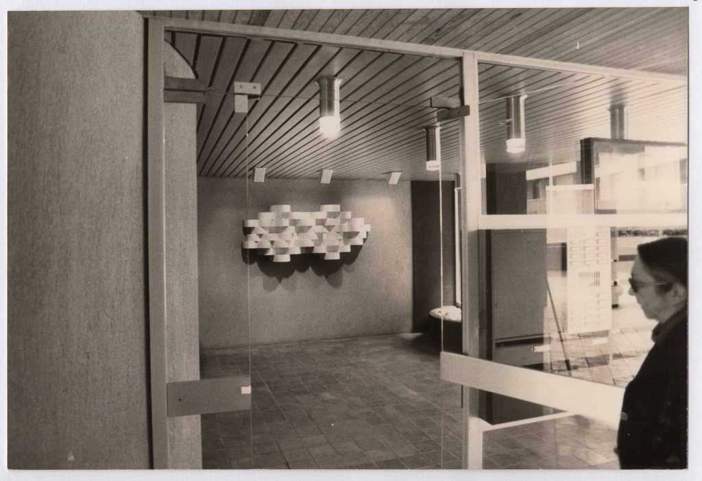 Η Ι. Βεροπούλου-Σπητέρη με παραλλαγή του έργου της “Αντίστιξη 2” (“Contrapunto 2”), σε είσοδο πολυκατοικίας στο Παρίσι