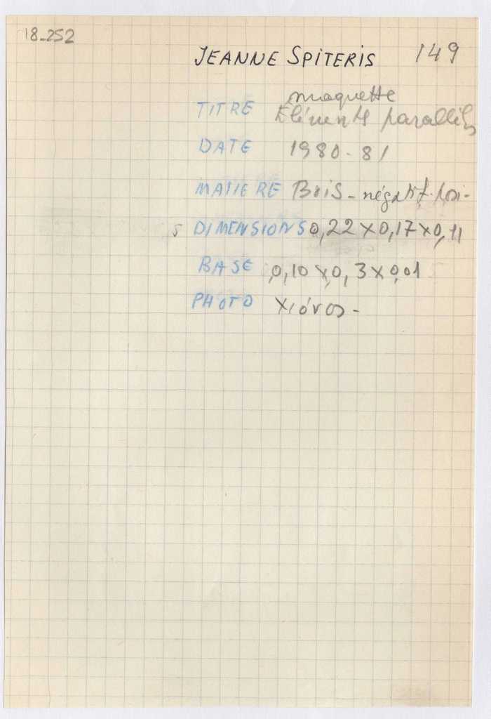 Ι. Βεροπούλου-Σπητέρη “Παράλληλα στοιχεία – μακέτα” (“Éléments parallèles – maquette”)