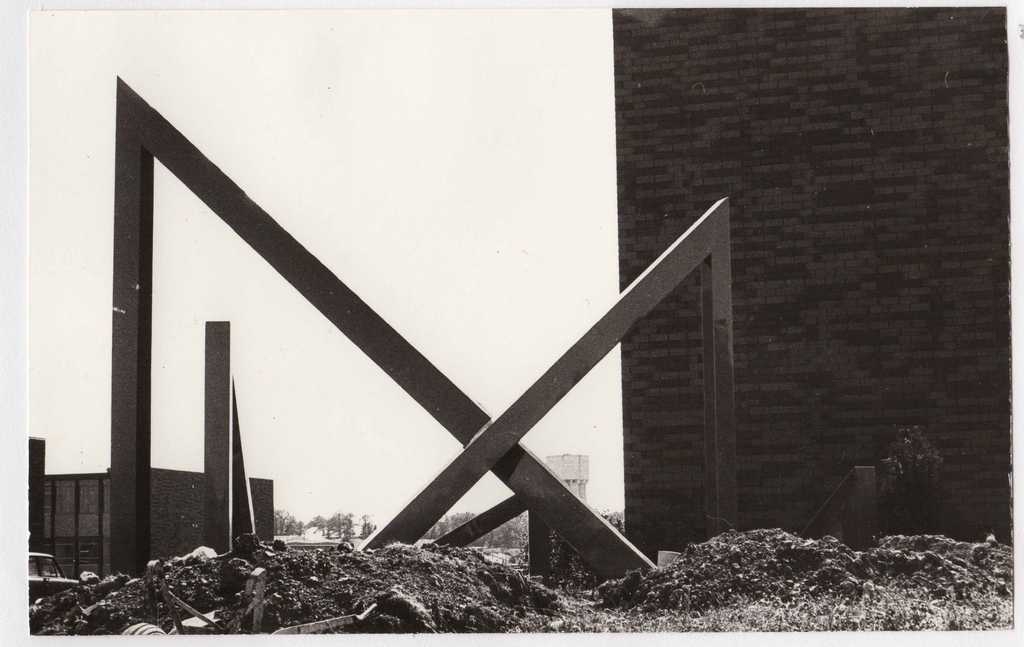Στήσιμο του έργου της Ι. Βεροπούλου-Σπητέρη “Σύνολο από πέντε τριγωνικά στοιχεία” (“Ensemble des cinq éléments triangulaires”) στo Evreux