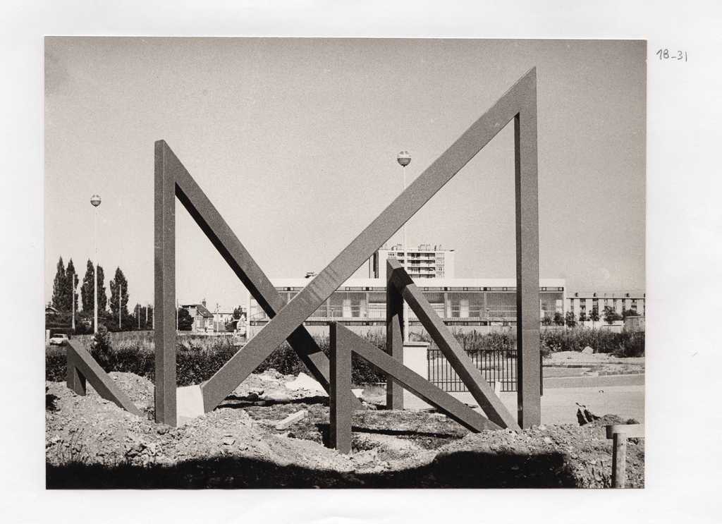 Στήσιμο του έργου της Ι. Βεροπούλου-Σπητέρη “Σύνολο από πέντε τριγωνικά στοιχεία” (“Ensemble des cinq éléments triangulaires”) στo Evreux