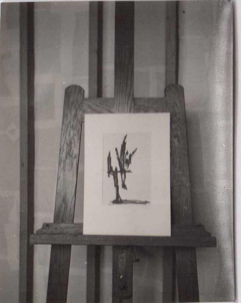 Φωτογραφία, α/μ, φωτογραφικό χαρτί, 5,5×4,5 εκ., έργου (σχέδιο) της Ιωάννας Βεροπούλου- Σπητέρη. Κολλημένη σε φύλλο Α4 μαζί με άλλες δεκαεπτά φωτογραφίες.