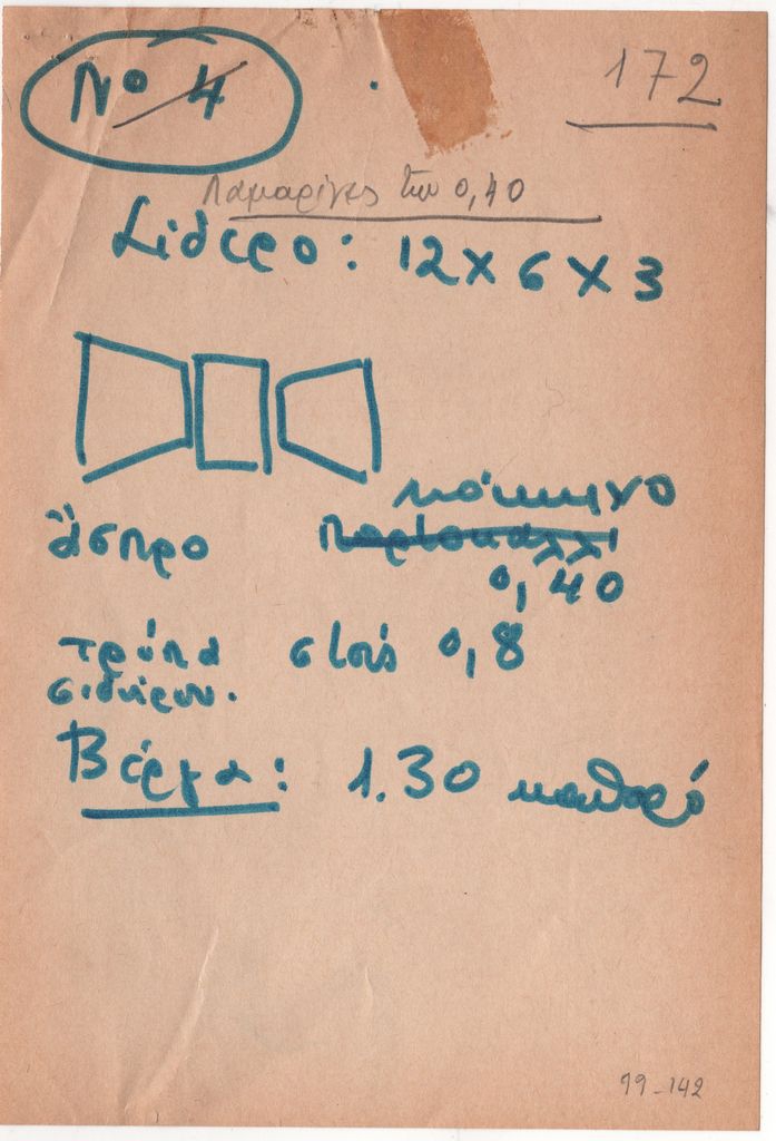 Απόκομμα, χαρτί, 5 φύλλα, 18×12 εκ. Σχέδια και σημειώσεις σχετικά με το έργο της Ι. Βεροπούλου-Σπητέρη “Πεταλούδες”. Στο χαρτί επιγραφές στα ελληνικά και σχέδια του έργου.
