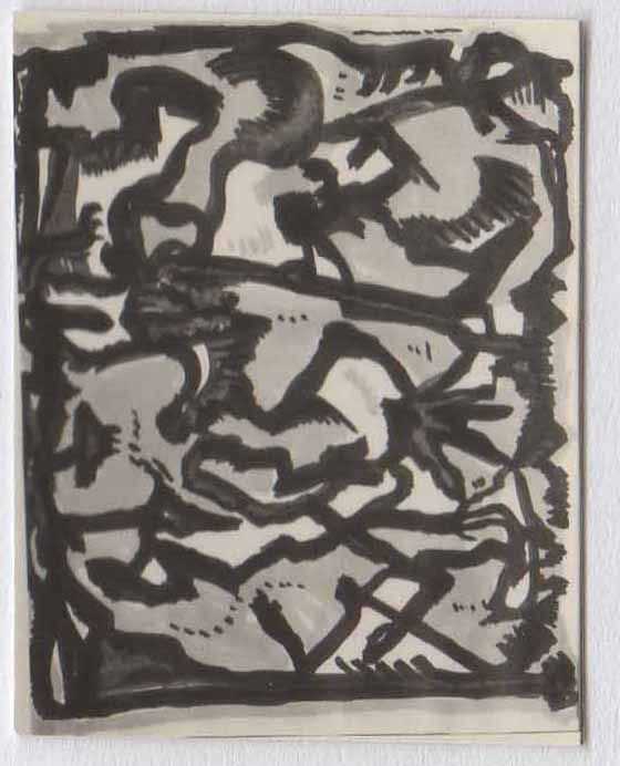 Φωτογραφία, α/μ, φωτογραφικό χαρτί, 3×2 εκ., έργου (σχέδιο) της Ιωάννας Βεροπούλου- Σπητέρη. Κολλημένη σε φύλλο Α4 μαζί με άλλες είκοσι φωτογραφίες.