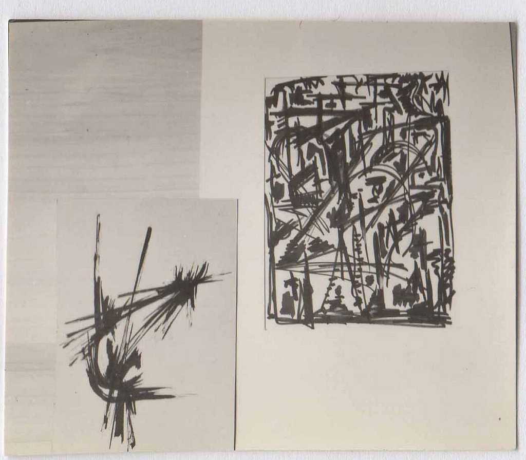 Φωτογραφία, α/μ, φωτογραφικό χαρτί, 4,5×5 εκ., έργων (σχέδια) της Ιωάννας Βεροπούλου- Σπητέρη. Κολλημένη σε φύλλο Α4 μαζί με άλλες είκοσι φωτογραφίες.