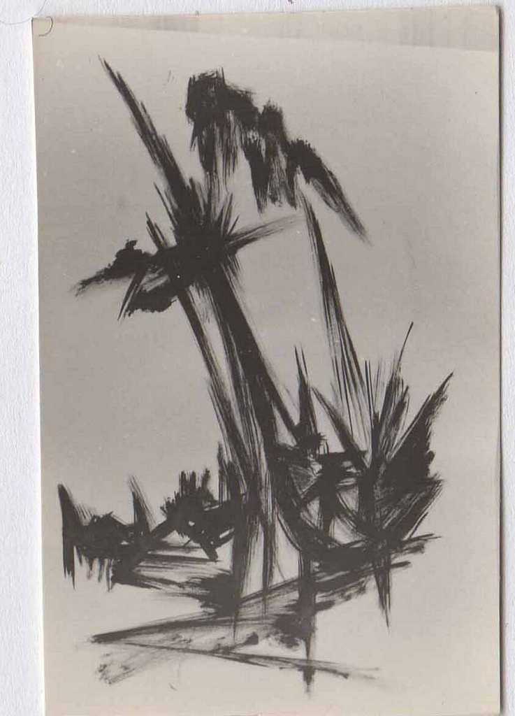 Φωτογραφία, α/μ, φωτογραφικό χαρτί, 5×3 εκ., έργου (σχέδιο) της Ιωάννας Βεροπούλου- Σπητέρη. Κολλημένη σε φύλλο Α4 μαζί με άλλες είκοσι φωτογραφίες.