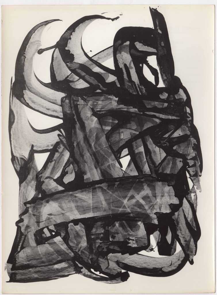 Φωτογραφία, α/μ, φωτογραφικό χαρτί, 24×18 εκ., έργου (σχεδίου) της Ιωάννας Βεροπούλου-Σπητέρη. Στην πίσω όψη, σφραγίδα-φόρμα της καλλιτέχνιδας συμπληρωμένη με πληροφορίες για το έργο, στα ιταλικά και σφραγίδα του φωτογράφου Fiorentini, στα ιταλικά. Επικολλημένη σε φύλλο Α4. Κάτω επιγραφή στα ιταλικά.