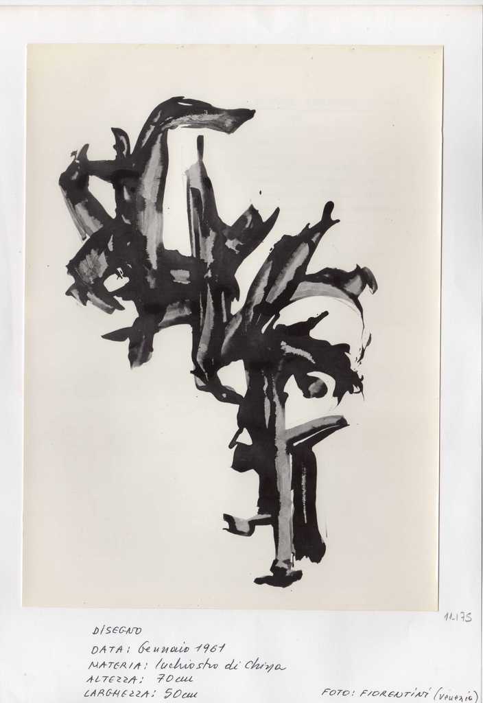 Φωτογραφία, α/μ, φωτογραφικό χαρτί, 24×17,5 εκ., έργου (σχεδίου) της Ιωάννας Βεροπούλου-Σπητέρη. Στην πίσω όψη, σφραγίδα-φόρμα της καλλιτέχνιδας συμπληρωμένη με πληροφορίες για το έργο, στα ιταλικά και σφραγίδα του φωτογράφου Fiorentini, στα ιταλικά. Επικολλημένη σε φύλλο Α4. Κάτω επιγραφή στα ιταλικά.