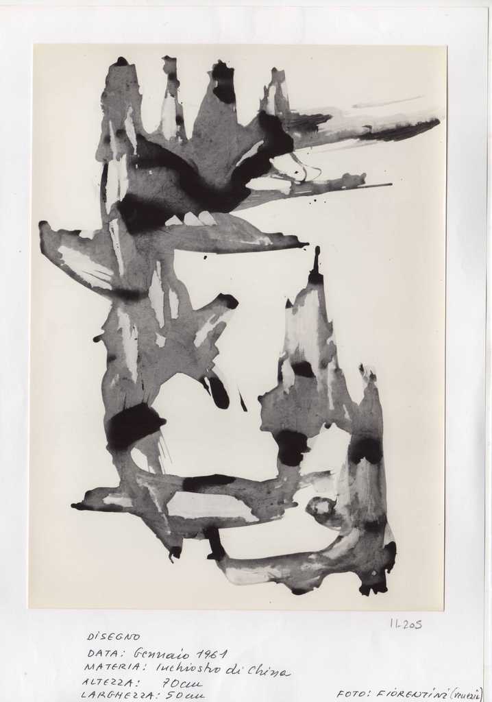 Φωτογραφία, α/μ, φωτογραφικό χαρτί, 24×17,5 εκ., έργου (σχεδίου) της Ιωάννας Βεροπούλου-Σπητέρη. Στην πίσω όψη, σφραγίδα-φόρμα της καλλιτέχνιδας συμπληρωμένη με πληροφορίες για το έργο, στα ιταλικά και σφραγίδα του φωτογράφου Fiorentini, στα ιταλικά. Επικολλημένη σε φύλλο Α4. Κάτω αριστερά και δεξιά επιγραφή στα ιταλικά.