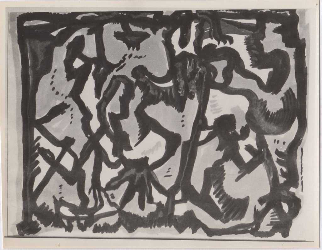 Φωτογραφία, α/μ, φωτογραφικό χαρτί, 10,1×12,9 εκ., αναπαραγωγή ζωγραφικού έργου της Ιωάννας Βεροπούλου-Σπητέρη, κολλημένη σε λευκή κόλλα Α4.