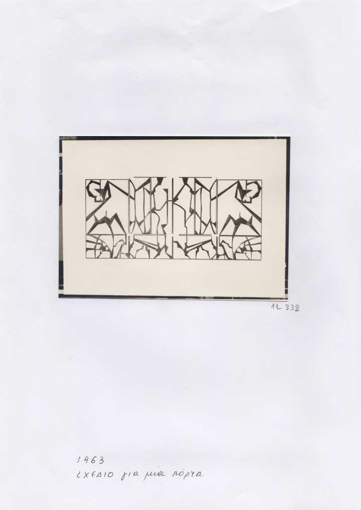 Φωτογραφία, α/μ, φωτογραφικό χαρτί, 9,5×13 εκ., έργου (σχεδίου) της Ιωάννας Βεροπούλου-Σπητέρη. Στην πίσω όψη, επιγραφές στα ελληνικά. Επικολλημένη σε φύλλο Α4.