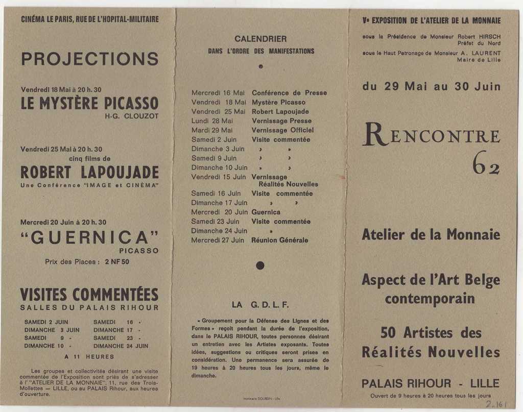 Έντυπο έκθεσης, στα γαλλικά, χαρτόνι, τρίπτυχο, δύο όψεις, 21×9 εκ. Περιέχει κείμενο σχετικά με την έκθεση καθώς και κατάλογο των καλλιτεχνών που συμμετέχουν.