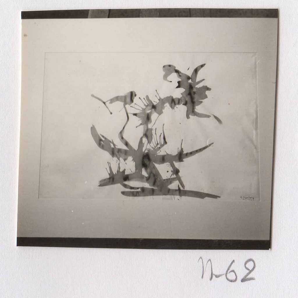 Φωτογραφία, α/μ, φωτογραφικό χαρτί, 4×4 εκ., έργου (σχεδίου) της Ιωάννας Βεροπούλου-Σπητέρη. Κολλημένη σε φύλλο Α4 μαζί με άλλες επτά φωτογραφίες. Κάτω αριστερά επιγραφή στα ελληνικά.