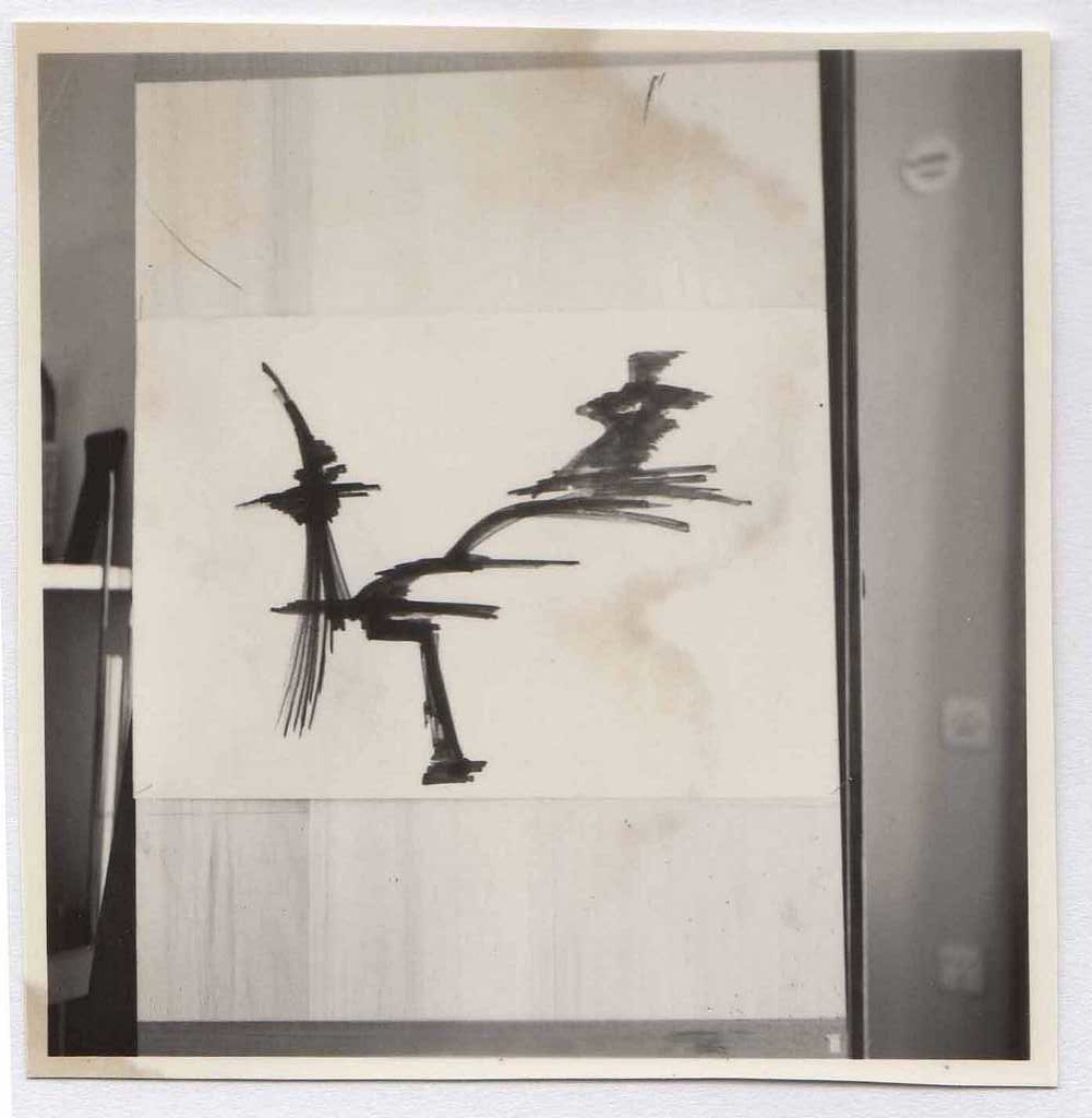 Φωτογραφία, α/μ, φωτογραφικό χαρτί, 5,5×5,5 εκ., έργου (σχέδιο) της Ιωάννας Βεροπούλου- Σπητέρη. Κολλημένη σε φύλλο Α4 μαζί με άλλες επτά φωτογραφίες.