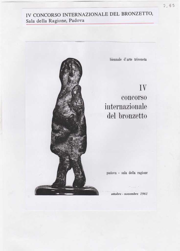 Φωτοαντίγραφο αποκόμματος εντύπου, χαρτί, 2 φφ, στα ιταλικά, χαρτί, 20,5×15,5 εκ. Περιέχει εικονογράφηση με αναπαραγωγή έργου της Ι. Βεροπούλου-Σπητέρη. Στο χαρτί, επικολλημένη έντυπη λεζάντα, στα ιταλικά: IV Concorso Internazionale del bronzetto, Sala della Ragione, Padova.