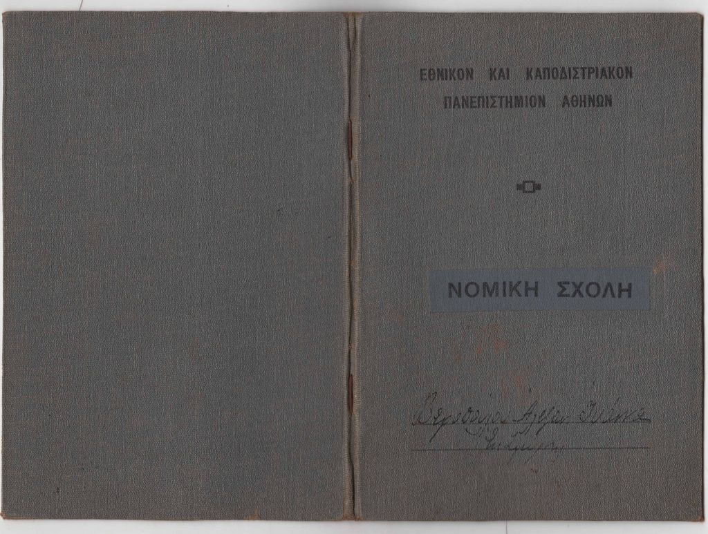 Φοιτητικό βιβλιάριο της Νομικής Σχολής του ΕΚΠΑ