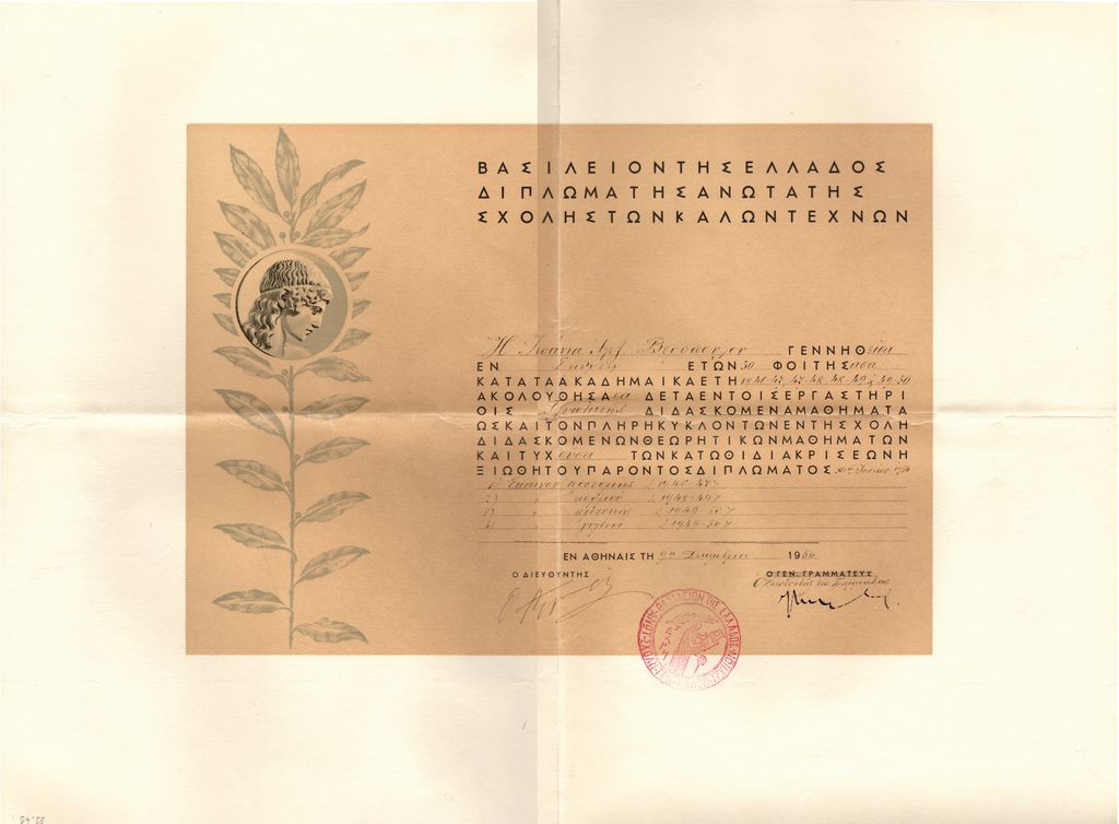 Δίπλωμα της Ανώτατης Σχολής των Καλών Τεχνών της Ιωάννας Βεροπούλου