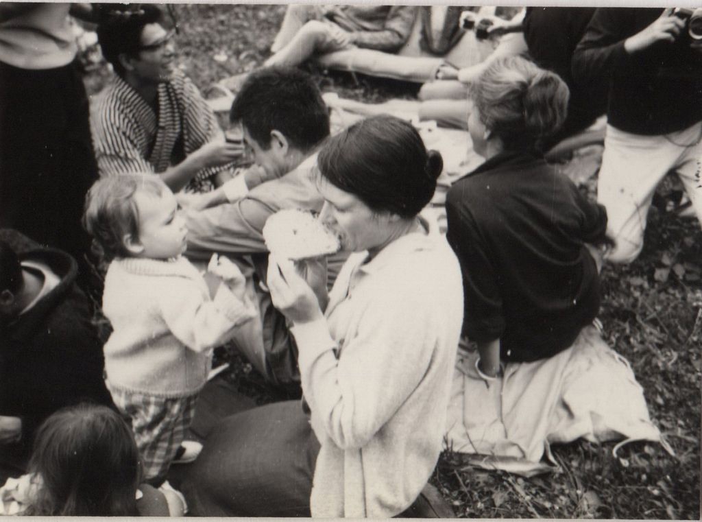 Φωτογραφία, α/μ, φωτογραφικό χαρτί, 4,5×6 εκ., επικολλημένη σε φύλλο χαρτί Α4, όπου επικολλημένο χαρτόνι με χειρόγραφη σημείωση, με λευκή ξυλομπογιά, στα γαλλικά: Costanjevica Juilliet 1963.