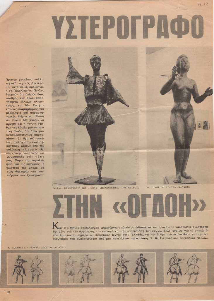 Απόκομμα, έντυπο, στα ελληνικά, χαρτί δύο όψεων, 3 φύλλα, 32×23 εκ. Αναφορά στην συμμετοχή της Ιωάννας Βεροπούλου-Σπητέρη στην 8η Πανελλήνιο Καλλιτεχνική Έκθεση.