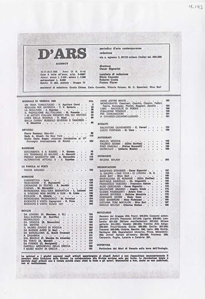 Φωτοαντίγραφο αποκόμματος εντύπου, στα ιταλικά, χαρτί, 3 φύλλα, 23,5×16 εκ., επικολλημένα σε φύλλο Α4. Άρθρο αναφερόμενο στην Ιωάννα Βεροπούλου-Σπητέρη, με αφορμή έκθεσή της στο Θέατρο La Fenice της Βενετίας. Αναγράφεται σύντομο βιογραφικό της σημείωμα.