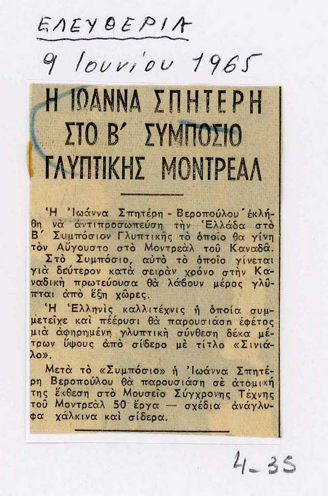 Ιωάννα Σπητέρη-Βεροπούλου (1920 - 2000) - Καλλιτέχνης