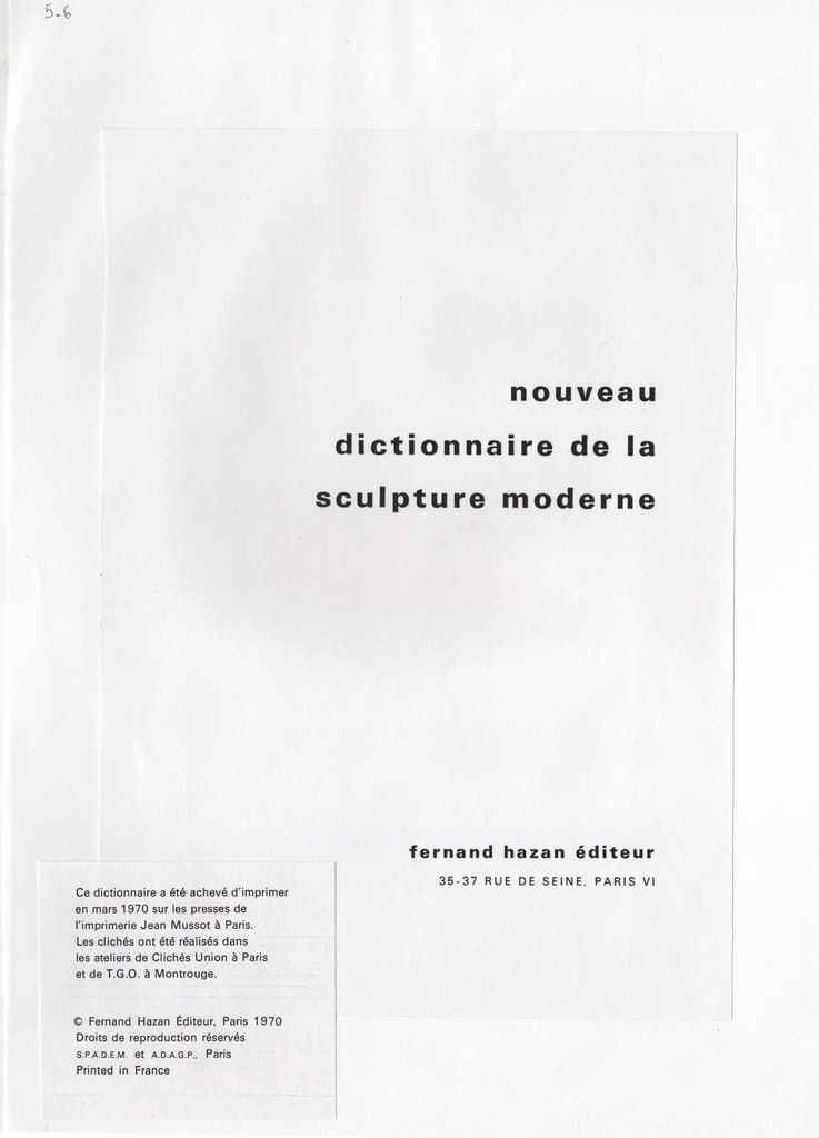 Φωτοαντίγραφο αποκόμματος εντύπου, στα γαλλικά, χαρτί, δύο τμήματα, 23,5×16,5 εκ., επικολλημένα σε φύλλο χαρτί Α4. Σελίδες από το Nouveau Dictionnaire de la sculpture moderne, 1970. Περιλαμβάνεται το λήμμα για την Ιωάννα Βεροπούλου-Σπητέρη.