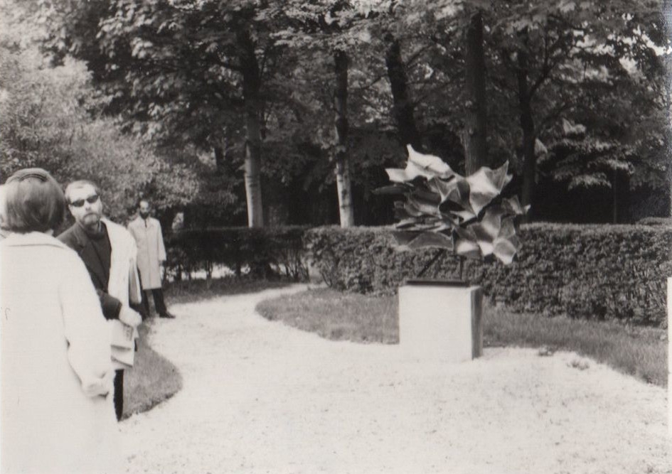 Φωτογραφία, α/μ, φωτογραφικό χαρτί, 4×5,5 εκ., επικολλημένη σε φύλλο χαρτί Α4,μαζί με άλλες φωτογραφίες. Στο χαρτί, επιγραφή, στα γαλλικά, και επικολλημένο, απόκομμα χαρτίου, με έντυπη λεζάντα: XVII SALON DE LA JEUNE SCULPTURE, Musée Rodin, Paris.