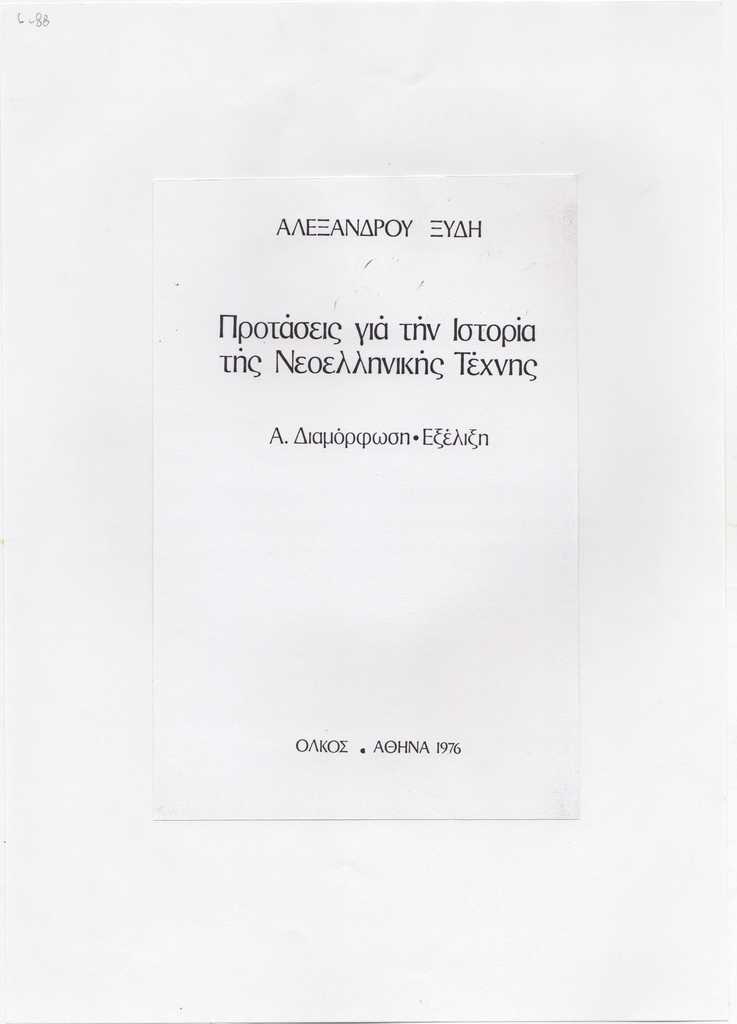 Προτάσεις για την Ιστορία της Νεοελληνικής Τέχνης Α. Διαμόρφωση-Εξέλιξη