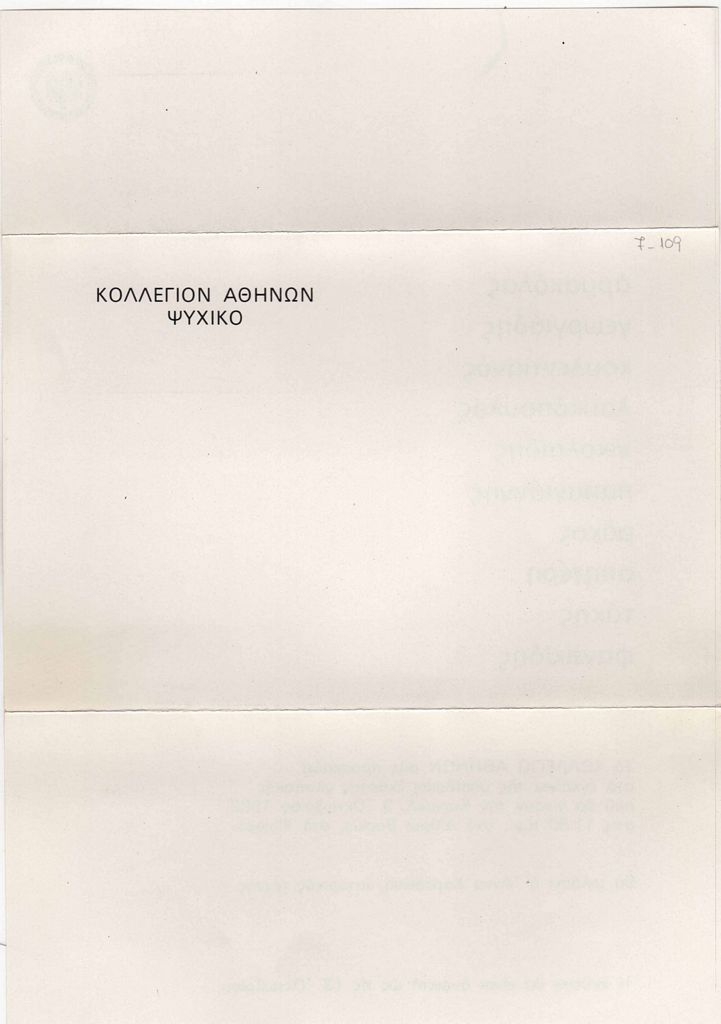 Έντυπο, στα ελληνικά, τρίπτυχο, χαρτόνι, διπλής όψης, 24,5×17,5 εκ. Πρόσκληση εγκαινίων έκθεσης.