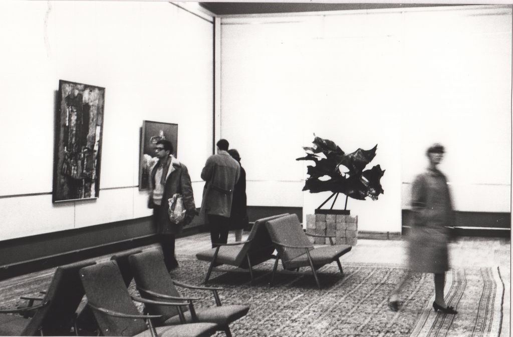 Φωτογραφία, α/μ, φωτογραφικό χαρτί, 8×14 εκ., επικολλημένη σε φύλλο χαρτί Α4, μαζί με άλλες φωτογραφίες. Στο χαρτί, επικολλημένο, απόκομμα χαρτιού, με σημείωση, χειρόγραφη, με μαύρο μελάνι: ομαδική έκθεση “ART HELLENIQUE CONTEMPORAIN”, Musèe RATH, Geneve 1967.
