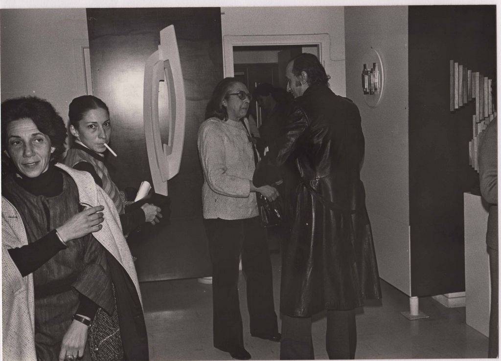 Η Ι. Σπητέρη με άλλα πρόσωπα στην Αίθουσα Τέχνης “Πολύπλανο” στα εγκαίνια της ατομικής της έκθεσης εκεί