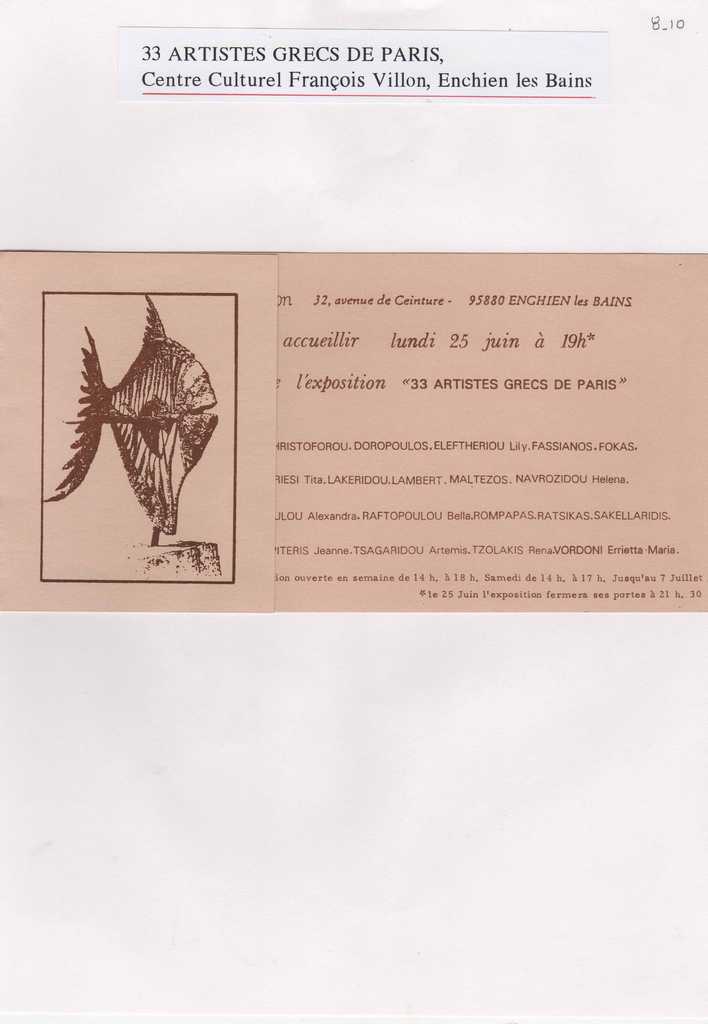 Πρόσκληση εγκαινίων έκθεσης “33 artistes grecs de Paris”