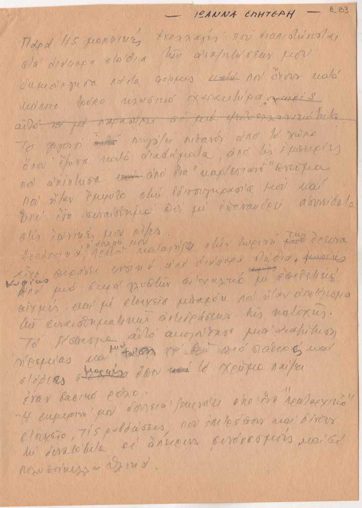 Χειρόγραφο προσχέδιο κειμένου της Ιωάννας Βεροπούλου-Σπητέρη