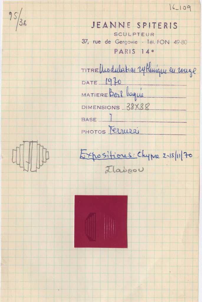 Ι. Βεροπούλου-Σπητέρη “Ρυθμική διαμόρφωση σε κόκκινο, ανάγλυφο” (“Modulation rythmique en rouge, bas relief”)