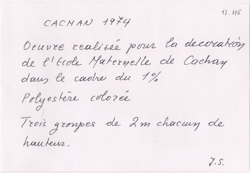 Κείμενο, χειρόγραφο, με μαύρο μελάνι, στα γαλλικά, 11,5×16,5 εκ., επικολλημένο σε φύλλο χαρτί Α4, μαζί με άλλο κείμενο. Αναφέρνονται τα στοιχεία του έργου.