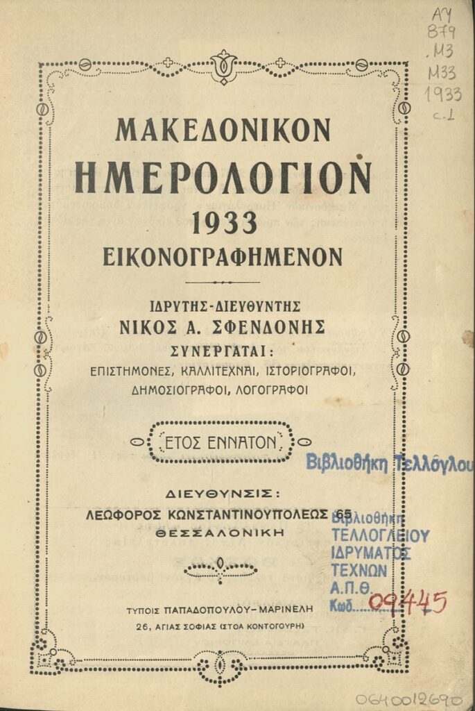 Μακεδονικόν Ημερολόγιον 1933: εικονογραφημένον