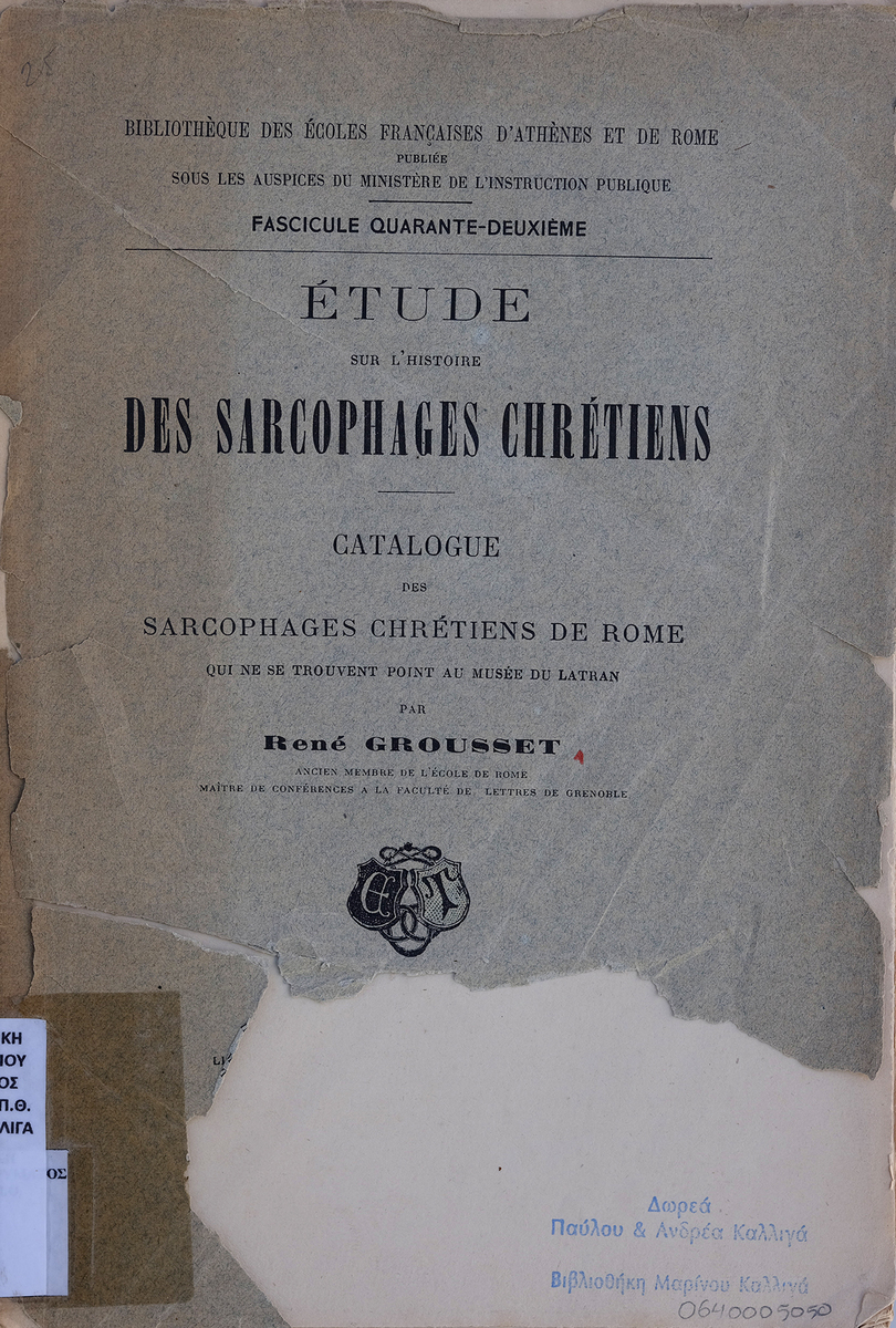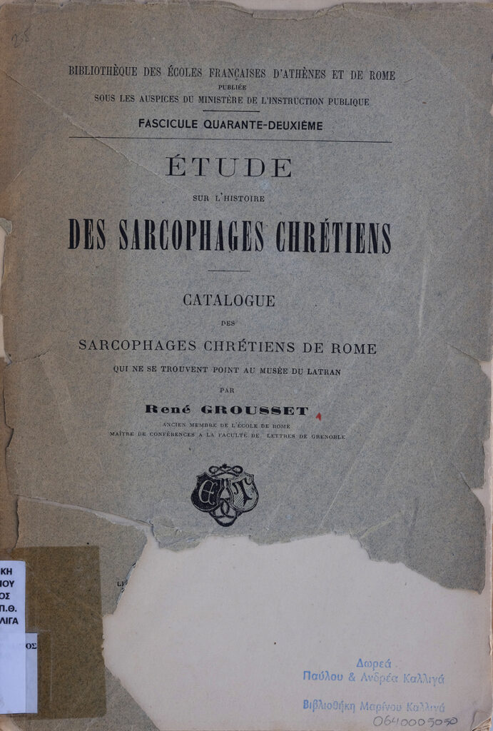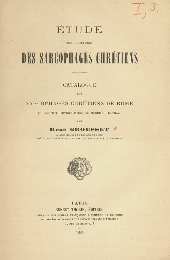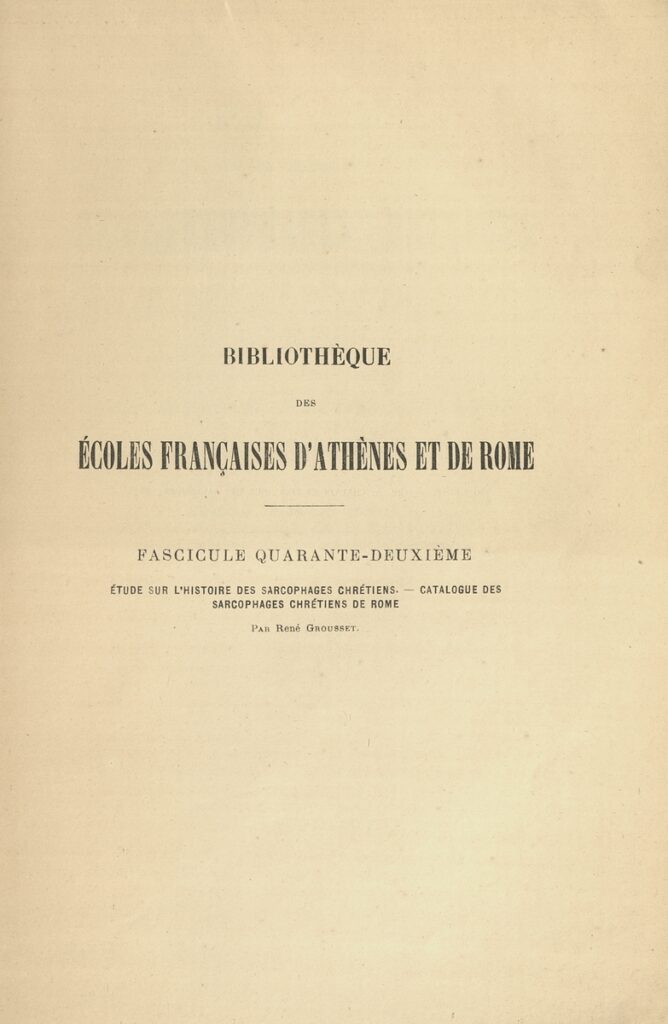 Étude sur l’histoire des sarcophages chretiens : Catalogue des sarcophages chrétiens de Rome qui ne se trouvent point au Musee du Latran