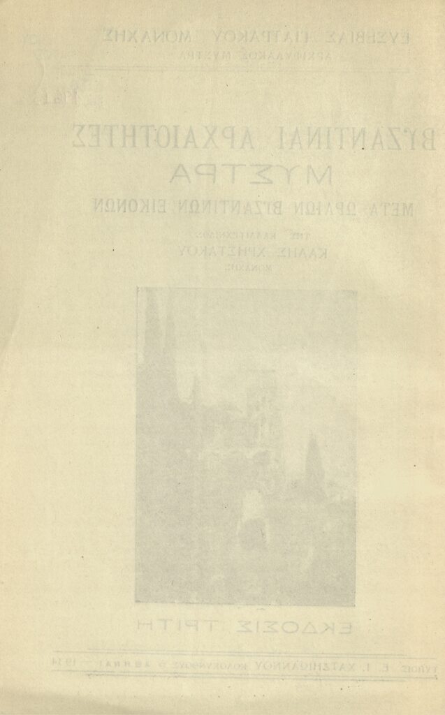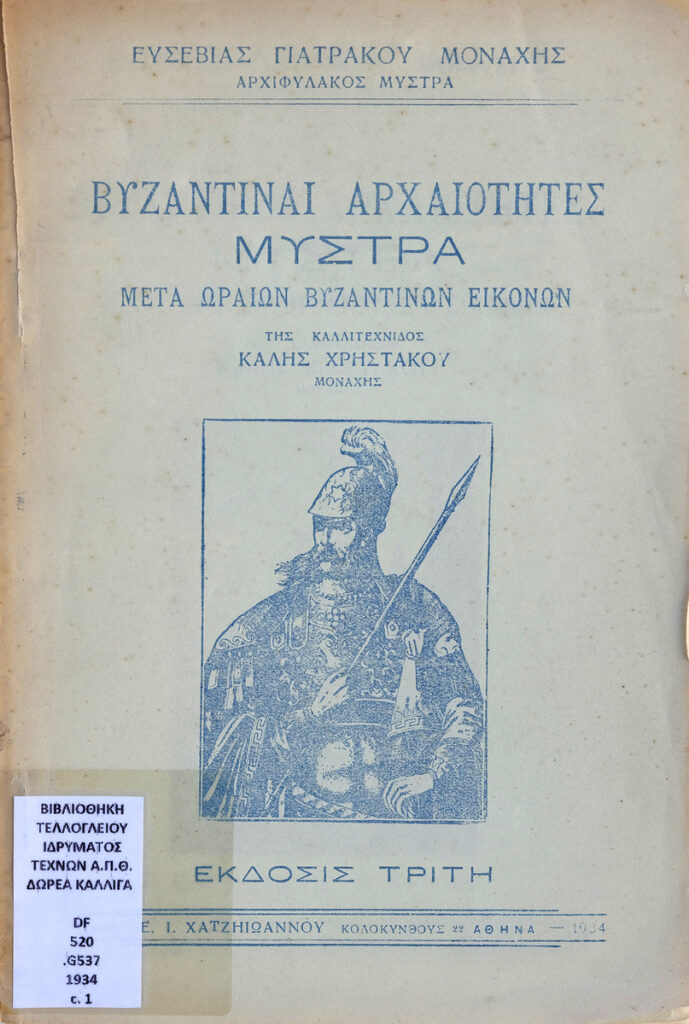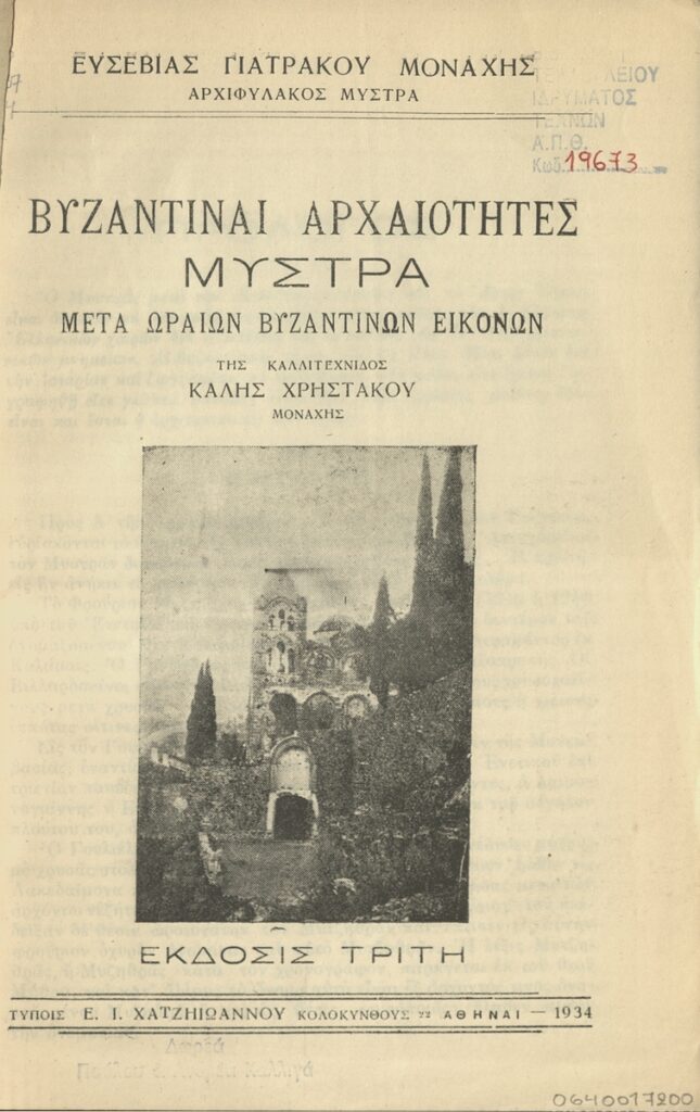 Βυζαντιναί αρχαιότητες Μυστρά μετά ωραίων βυζαντινών εικόνων της καλλιτέχνιδος Κάλης Χρηστάκου μοναχής