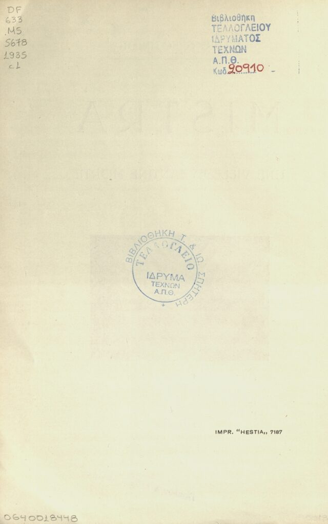 dkallig | Α.Ε. -- 20910 | DF633.M5 S678 1935 | 0640018448 | 2021-06-15 | c. 1 | 2021-06-15 |NonLoan | Περιέχει αφιέρωση